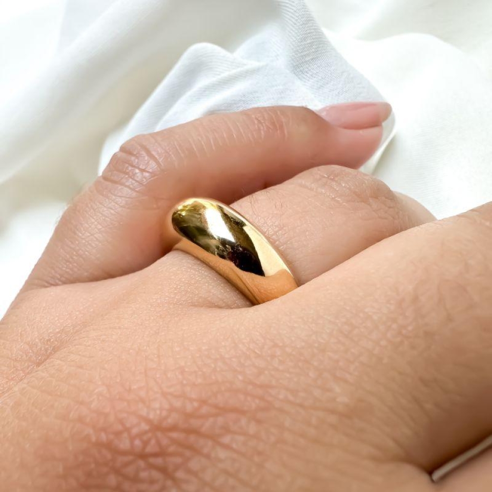 O anel liso dourado é uma peça clássica que nunca sai de moda. Com design minimalista e acabamento polido de alto brilho, ele é perfeito para quem busca elegância e versatilidade em um único acessório. Seu formato levemente abaulado proporciona um visual moderno e sofisticado, além de garantir conforto no uso diário.